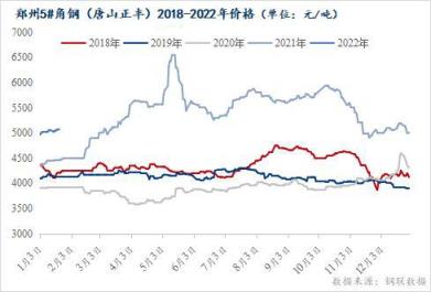 從近五年價(jià)格來看,2021年整體價(jià)格較往年明顯抬升,以鄭州5#角鋼(唐山正豐)為例,2021年均價(jià)較2020同期上升36.96%,最高點(diǎn)為五月份6550元/噸,比2020年十二月份峰值高1950元/噸。進(jìn)入本月,河南地區(qū)型鋼價(jià)格小幅上漲,1月份雖然河南多地疫情頻發(fā),交通運(yùn)輸管控加嚴(yán),下游采購進(jìn)度受限,整體需求表現(xiàn)不佳,但受到原材料鐵礦及環(huán)保政策等因素的影響,價(jià)格趨強(qiáng)運(yùn)行。截止目前,河南疫情得以有效控制,考慮到春節(jié)假期過后,下游逐步復(fù)工,需求好轉(zhuǎn),預(yù)計(jì)市場價(jià)格有一定上漲空間。