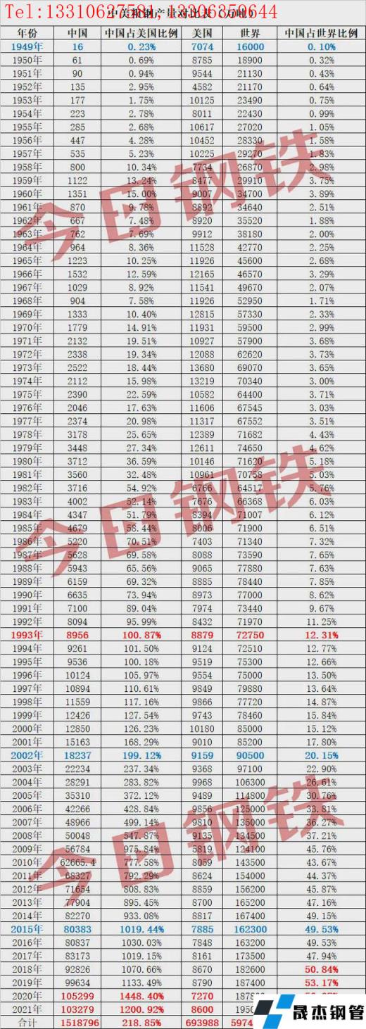 根據(jù)以上情況,筆者查閱了世界鋼鐵行業(yè)協(xié)會(huì)、國(guó)家統(tǒng)計(jì)局以及其他相關(guān)渠道的數(shù)據(jù)信息,收集整理了中國(guó)、美國(guó)以及世界1949年到2021年粗鋼產(chǎn)量的數(shù)據(jù)(僅用于示意分析),以此勾勒并呈現(xiàn)中國(guó)鋼鐵產(chǎn)業(yè)發(fā)展的線條!這是中國(guó)鋼鐵工業(yè)自力更生、趕超先進(jìn)的歷史,也是中國(guó)鋼鐵工業(yè)走向世界之巔的記錄!
