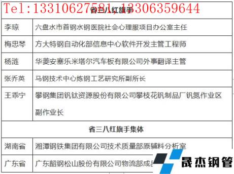 除了這些獲得全國三八紅旗手、全國三八紅旗集體榮譽的鋼鐵巾幗之外,不少省市也發(fā)布了2021年度的省三八紅旗手名單,其中也有不少人是來自各地鋼企的個人和集體: