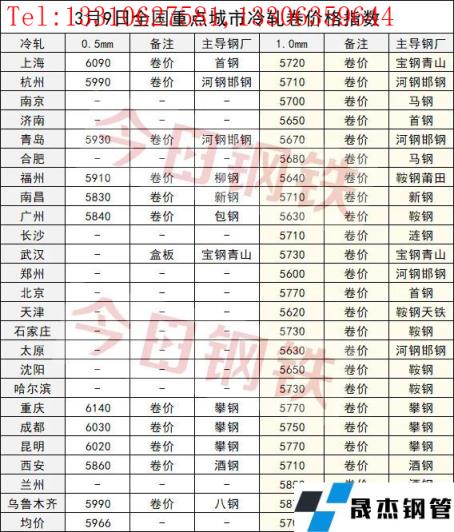 截至3月9日,全國(guó)主要城市0.5mm冷軋板卷均價(jià)5966元/噸,周環(huán)比上漲59元/噸;1.0mm冷軋板卷均價(jià)5708元/噸,周環(huán)比上漲65元/噸。以下為3月4日與3月9日全國(guó)重點(diǎn)城市冷軋板卷價(jià)格指數(shù)對(duì)比情況: