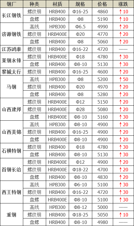 上調(diào)11家,占比91.7%,調(diào)價(jià)幅度10-50元/噸;