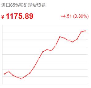 1月21日,跟據(jù)今日鐵礦公布的鐵礦石價(jià)格來(lái)看,進(jìn)口65%粉礦現(xiàn)貨貿(mào)易價(jià)格1175.89元/噸,較前一個(gè)交易日上漲4.51,漲幅0.39%;進(jìn)口54%粉礦到岸價(jià)格161.57美元/噸,較前一個(gè)交易日上漲1.45,漲幅0.91%;國(guó)產(chǎn)65%鐵精礦價(jià)格1009.72,元/噸,較前一個(gè)交易日上漲1.42,漲幅0.14%。