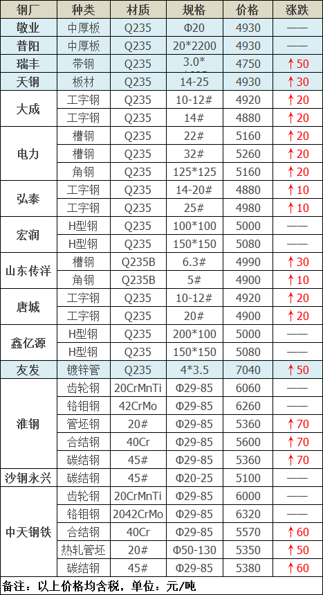 上調(diào)14家,占比53.8%,調(diào)價幅度10-70元/噸,