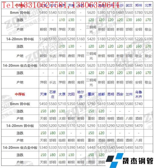 全國23個主要市場14-20mm 低合金中板平均價格5446元/噸,較上個交易日下調(diào)26元/噸。