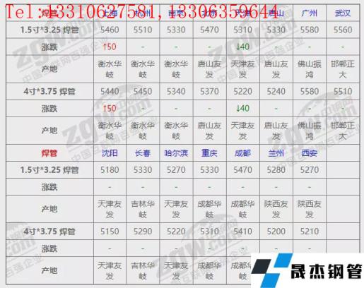 全國15個主要市場4寸*3.75 焊管平均價格5329元/噸,較上個交易日價格相同