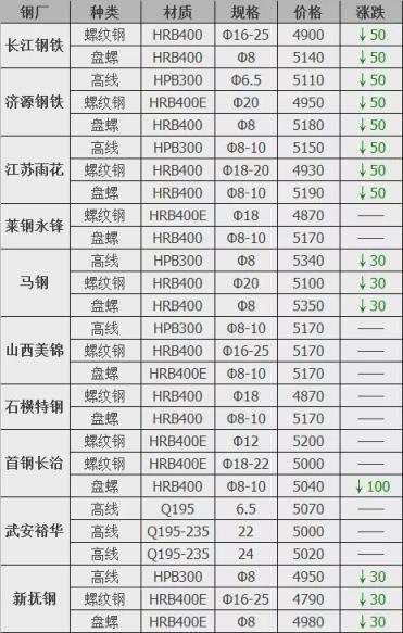 下調(diào)6家,占比37.5%,調(diào)價(jià)幅度50-100元/噸;