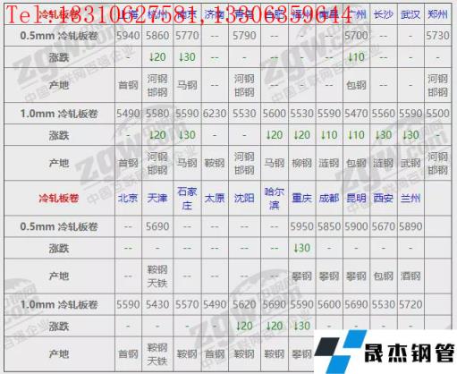 全國23個主要市場1.0mm 冷軋板卷平均價格5599元/噸,較上個交易日下調(diào)13元/噸。