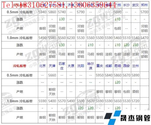 全國23個主要市場1.0mm 冷軋板卷平均價格5583元/噸,較上個交易日下調(diào)9元/噸。