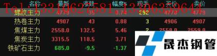 今日螺紋主力期貨漲35,收?qǐng)?bào)4779,漲幅0.74%;熱卷主力漲43,收?qǐng)?bào)4907,漲幅0.88%;焦煤主力漲132.5,收?qǐng)?bào)2558,漲幅5.46%;焦炭主力漲118.5,收?qǐng)?bào)3315.5,漲幅3.71%;鐵礦石主力跌9.5,收?qǐng)?bào)685,跌幅1.37%。