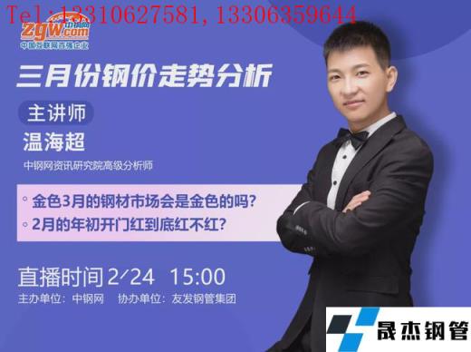 3月旺季臨近,厚壁鋼管市場(chǎng)會(huì)是金色的嗎?在庫存大幅走高,鋼價(jià)如何演繹?伴隨著政策監(jiān)管日益趨嚴(yán),鐵礦石價(jià)格大跌之后,一季度還存在哪些機(jī)會(huì)?更多熱點(diǎn)資訊,請(qǐng)關(guān)注2月24日下午三點(diǎn),2022年三月份行情直播會(huì),河南銀商通實(shí)業(yè)有限公司總經(jīng)理孫建、資訊研究院高級(jí)分析師溫海超等,圍繞著“市場(chǎng)厚壁鋼管需求方向解析”、“當(dāng)下政策的影響”、“影響鋼價(jià)熱點(diǎn)話題”、“3月份鋼價(jià)走勢(shì)預(yù)測(cè)”等熱點(diǎn)話題鞭辟入里、層層分析。