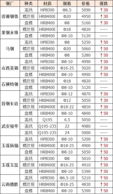 上調(diào)7家,占比70%,調(diào)價幅度30-50元/噸;