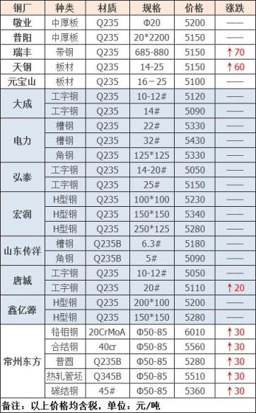 3月3日唐山經(jīng)安鋼鐵降20執(zhí)行價:鋼筋頭3660,鋼坯頭3660,沖料3640-3660,鋼板料3620-3660,模具鋼3660,火車輪3660,全新鋼板料3660,道軌3660,不含稅,單位:元/噸。各種新舊鋼件、鑄件、超厚重廢根據(jù)厚度看貨定價,以上料型發(fā)現(xiàn)摻雜使假整車沒收。