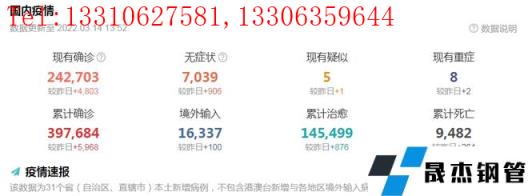 截止3月14日下午1點(diǎn)52分,全國現(xiàn)有確診病例242703例,較昨日新增4803例,無癥狀感染者7039例,較昨日新增906例。目前確診病例集中在吉林、長春、青島、深圳、寶雞、天津、上海、廊坊、滄州、西安等地,上述地區(qū)及周邊關(guān)聯(lián)地區(qū)不斷上調(diào)防控疫情等級。