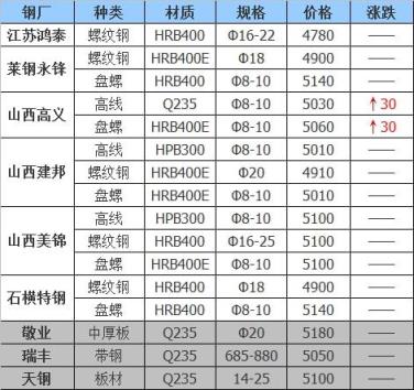 22日江陰興澄特鋼開始正常收貨,鋼板料3990,工角槽3880-3850,剪料3810-3710,普爐料3650-3550以上均為含稅價(jià),聯(lián)系電話金敏13815123456。疫情期間外地車輛進(jìn)江陰請(qǐng)牢記注意事項(xiàng)。