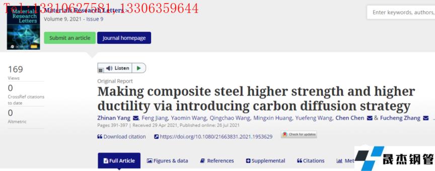 在本研究中,燕山大學(xué)提供了一種新的元素擴散策略,即輕元素(如碳)的長程擴散。與初始整體馬氏體鋼相比,該策略不會降低每一層的機械性能,并提高復(fù)合馬氏體鋼的強度和延展性。相關(guān)研究成果以題“Making composite steel higher strength and higher ductility via introducing carbon diffusion strategy”發(fā)表在國際著名期刊Materials Research Letters上。
