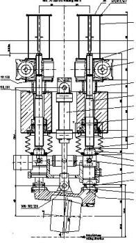 軋輥調(diào)整裝置保證按照軋制要求調(diào)整孔喉和輾軋角,由兩個電動壓下絲杠完成的,它們可單獨(dú)操作,也可以同時操作,當(dāng)兩個壓下絲杠進(jìn)行反向運(yùn)動時,可調(diào)整軋輥的輾軋角,確定輾軋角后,兩個絲杠同時壓下或抬起可調(diào)整軋輥的孔喉尺寸。在兩個壓下絲杠之間,機(jī)架內(nèi)有一個液壓缸與軋輥座連接,它的作用是保持輥箱的穩(wěn)定,避免壓下絲杠端部與轉(zhuǎn)轂之間產(chǎn)生間隙,我們稱之為平衡缸。