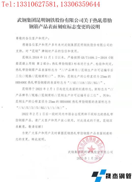 2022年2月1日后一段時(shí)間內(nèi)市場(chǎng)會(huì)出現(xiàn)兩種不同標(biāo)志的熱軋帶肋鋼筋產(chǎn)品,請(qǐng)廣大客戶和用戶放心使用,對(duì)此造成的不便,昆鋼深表歉意,敬請(qǐng)諒解!