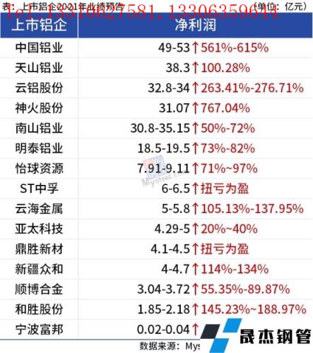免責聲明:本網(wǎng)站(山東聊城晟杰無縫鋼管廠m.androidrecoverysoftware.com)刊載的“15家上市鋁企2021年業(yè)績飄紅,神火股份大增超7倍”等均源于網(wǎng)絡,版權(quán)歸原作者所有,且僅代表原作者觀點,本文所載信息僅供參考。轉(zhuǎn)載僅為學習與交流之目的,如無意中侵犯您的合法權(quán)益,請及時聯(lián)系刪除。本網(wǎng)站刊登此篇文章并不意味著本站贊同其觀點或證實其內(nèi)容的真實性,我們不對其科學性、嚴肅性等作任何形式的保證。如果侵犯了您的版權(quán),請盡快聯(lián)系我們予以撤銷,謝謝合作!