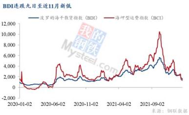 波羅的海干散貨運價指數(shù)(BDI)是反映全球礦石、煤炭等大宗散貨運價的權(quán)威指標(biāo)。近三個月來,因為所有型船需求疲軟,截止2022年1月24日,波羅的海干散貨運價指數(shù)連續(xù)第十二個交易日下滑至1391點,為去年2月以來最低水準(zhǔn);BCI跌至891點為2020年6月以來新低。
