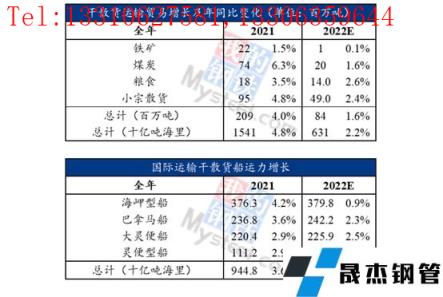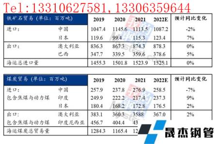 全球海運鐵礦石貿(mào)易在2021全年達(dá)到15.24億噸,同比增長1.5%,但增速預(yù)計將在2022年繼續(xù)放緩,因為中國的進(jìn)口預(yù)計將繼續(xù)從2020的創(chuàng)紀(jì)錄水平回落,這是由于鋼材需求疲軟和鋼鐵產(chǎn)量的限制。從的247無縫鋼管廠家鐵水生產(chǎn)節(jié)奏也能展現(xiàn)端倪:10月開始,鐵水產(chǎn)量就一路走低,最終于12月中旬,247樣本鐵水日產(chǎn)量跌至歷史最低值198.7萬噸。