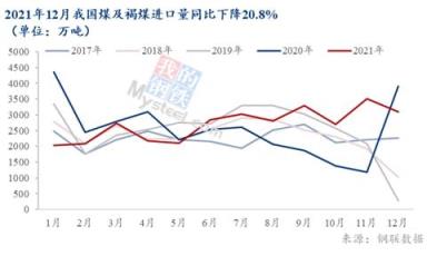煤炭是與鐵礦石海運貿(mào)易體量相當(dāng)?shù)牧硪淮笞谏唐罚?0月開始國內(nèi)原煤產(chǎn)量在增產(chǎn)保供下不斷提高,也變相著削弱中國對海外煤的依賴:我國10-12月份原煤產(chǎn)量分別為3.6、3.7、3.8億噸屢創(chuàng)國內(nèi)新高,對海外煤炭需求逐漸減弱,12月我國進(jìn)口煤炭同比下滑20%。步入2022年1月,印尼煤炭出口禁令對海運市場算是雪上加霜。