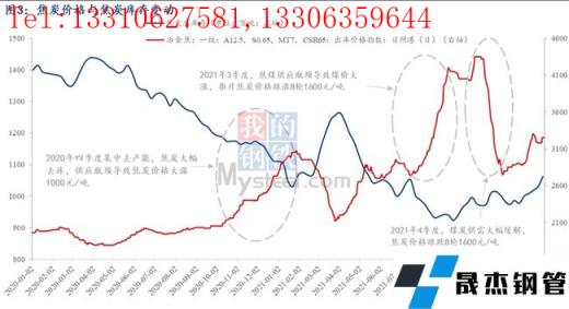 2)而2021年雖沒有再出現(xiàn)2020年4季度集中大幅去產(chǎn)能的情況。但仍出現(xiàn)了2021年三季度焦炭價格大漲1600元/噸的情形,兩個半月漲幅48%,漲幅明顯高于2020年四季度。這主要是由于焦煤供應(yīng)受限導(dǎo)致的煤價大漲推升焦炭成本大幅上漲,以呂梁低硫主焦煤來看,其價格從6月底至9月底漲了一倍(2050-4100元/噸),焦炭供應(yīng)矛盾從產(chǎn)能約束轉(zhuǎn)移至原料供應(yīng)受限。同樣的,2021年四季度后,國家出臺煤炭保供政策,原料供應(yīng)大幅緩解,同時需求端鐵水產(chǎn)量大減,最終傳導(dǎo)至焦煤價格大跌,焦炭價格應(yīng)聲回落1600元/噸。