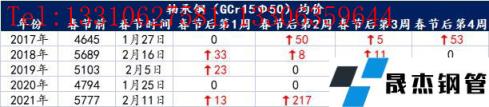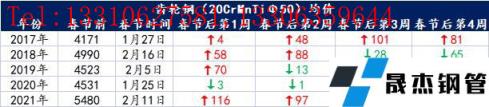 小編匯總近5年春節(jié)后四周優(yōu)特鋼各品種均價(jià)變化情況,以供參考。