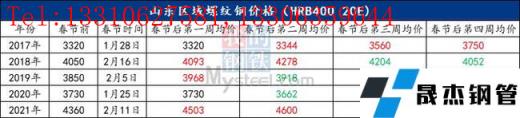 三、近五年山東建筑厚壁無(wú)縫鋼管春節(jié)均價(jià)走勢(shì):