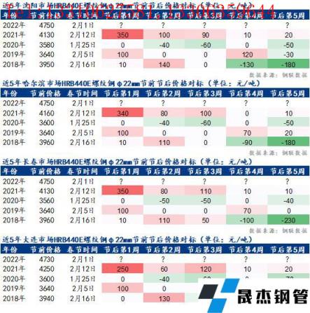 小編匯總了近5年春節(jié)前后東北建筑厚壁無縫鋼管市場價格變化情況,除2020年受公共衛(wèi)生事件影響平穩(wěn)運行外,其余年份節(jié)后首周多數都是“開門紅”狀態(tài),在第4-5周基本會出現(xiàn)沖高后回調的情況。具體情況如下: