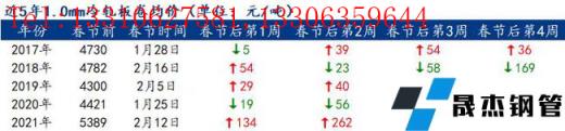 小編匯總近5年春節(jié)后四周冷軋板卷均價(jià)變化情況,以供參考。