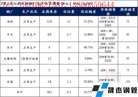 江蘇優(yōu)特?zé)o縫厚壁鋼管廠家棒材總庫(kù)存36.2萬(wàn)噸,較節(jié)前增9.3萬(wàn)噸,增幅34.57%,較去年春節(jié)后庫(kù)存減少10.15萬(wàn)噸。