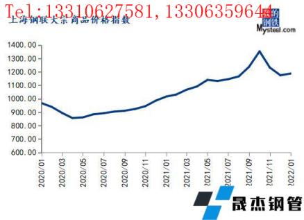 2022年1月份,上海鋼聯(lián)中國大宗商品價格指數(shù)(MyBCIC)終值為1187.71,同比上漲16.80%,環(huán)比上漲1.09%。
