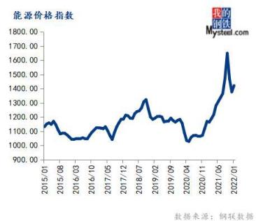 1月份能源價格指數(shù)為1421.18,環(huán)比上漲3.24%,同比上漲21.58%。