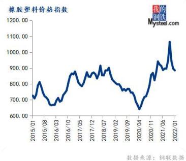 1月份橡膠塑料價格指數(shù)為885.45,環(huán)比下跌1.29%,同比上漲7.55%。