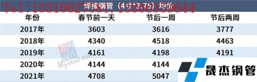 小編匯總近5年春節(jié)后兩周全國(guó)主要城市13大品種厚壁無(wú)縫鋼管均價(jià)走勢(shì),以供參考。