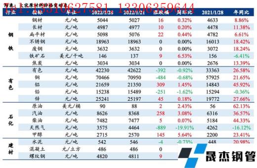免責聲明:本網站(山東聊城晟杰無縫鋼管廠m.androidrecoverysoftware.com)刊載的“大宗原材料價格周報(1.24-1.28)”等均源于網絡,版權歸原作者所有,且僅代表原作者觀點,本文所載信息僅供參考。轉載僅為學習與交流之目的,如無意中侵犯您的合法權益,請及時聯(lián)系刪除。本網站刊登此篇文章并不意味著本站贊同其觀點或證實其內容的真實性,我們不對其科學性、嚴肅性等作任何形式的保證。如果侵犯了您的版權,請盡快聯(lián)系我們予以撤銷,謝謝合作!