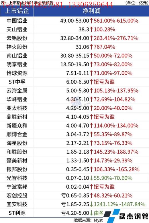 免責(zé)聲明:本網(wǎng)站(山東聊城晟杰無(wú)縫鋼管廠m.androidrecoverysoftware.com)刊載的“23家上市鋁企披露2021年業(yè)績(jī)預(yù)報(bào),超8成凈利潤(rùn)增長(zhǎng)”等均源于網(wǎng)絡(luò),版權(quán)歸原作者所有,且僅代表原作者觀點(diǎn),本文所載信息僅供參考。轉(zhuǎn)載僅為學(xué)習(xí)與交流之目的,如無(wú)意中侵犯您的合法權(quán)益,請(qǐng)及時(shí)聯(lián)系刪除。本網(wǎng)站刊登此篇文章并不意味著本站贊同其觀點(diǎn)或證實(shí)其內(nèi)容的真實(shí)性,我們不對(duì)其科學(xué)性、嚴(yán)肅性等作任何形式的保證。如果侵犯了您的版權(quán),請(qǐng)盡快聯(lián)系我們予以撤銷,謝謝合作!