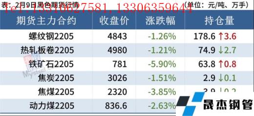 2月9日,國(guó)內(nèi)厚壁無縫鋼管市場(chǎng)上漲為主,唐山鋼坯出廠價(jià)格穩(wěn)報(bào)4670元/噸。今日黑色系市場(chǎng)現(xiàn)貨與期貨走勢(shì)出現(xiàn)“劈叉”,原料端主力受消息面影響大幅走弱,現(xiàn)貨端表現(xiàn)相對(duì)較強(qiáng)。