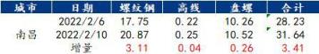 今年春節(jié)節(jié)前JJPG檢修,使得南昌建筑厚壁無(wú)縫鋼管市場(chǎng)春節(jié)前庫(kù)存非常低,而二月中旬FDTG有計(jì)劃進(jìn)行檢修,對(duì)盤(pán)螺產(chǎn)量影響較大,由此可預(yù)計(jì)南昌建材庫(kù)存累庫(kù)速度將慢于往年。