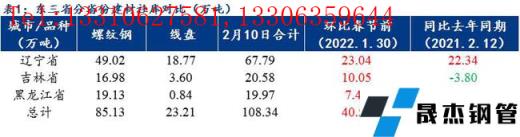 本周為春節(jié)后第二周,東三省建筑厚壁無縫鋼管現(xiàn)貨庫(kù)存整體較春節(jié)前最后一周增加40.52萬噸,其中螺紋鋼現(xiàn)貨庫(kù)存85.13萬噸,線盤23.21萬噸,建材社會(huì)庫(kù)存總量為108.34萬噸,較上周增40.52萬噸,增幅高達(dá)37.40%。據(jù)悉春節(jié)期間各市場(chǎng)到貨較多,尤其以沈陽(yáng)和長(zhǎng)春市場(chǎng)累庫(kù)最為明顯,主要是西鋼、新?lián)徜?、新鵬輝和四平等廠庫(kù)陸續(xù)前移至市場(chǎng)。