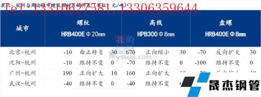 從區(qū)域價(jià)差來看,今日華北地區(qū)與杭州市場(chǎng)螺紋鋼價(jià)差由正轉(zhuǎn)負(fù),杭州價(jià)格開始高于北京價(jià)格;東北、華中地區(qū)與杭州市場(chǎng)螺紋鋼價(jià)差維持不變;華南地區(qū)與杭州市場(chǎng)螺紋鋼價(jià)差繼續(xù)擴(kuò)大。