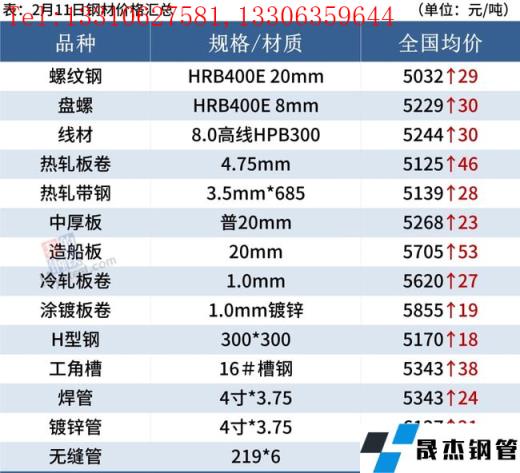 建筑厚壁無縫鋼管:2月11日,全國31個(gè)主要城市20mm三級抗震螺紋鋼均價(jià)5032元/噸,較上個(gè)交易日上漲29元/噸。短期來看,目前現(xiàn)貨市場仍然處于供需雙弱的格局,情緒面驅(qū)動價(jià)格上漲,同時(shí)當(dāng)前現(xiàn)貨市場庫存總量遠(yuǎn)低于去年同期。因此預(yù)計(jì)下周國內(nèi)建筑厚壁無縫鋼管價(jià)格或?qū)⒗^續(xù)趨強(qiáng)為主。