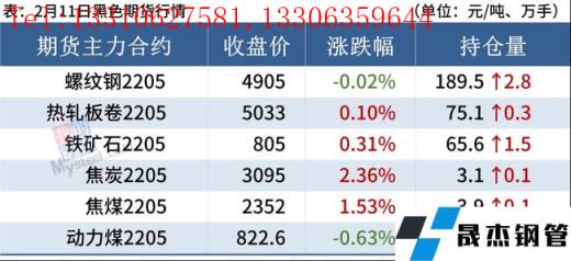 中厚板:2月11日,全國24個(gè)主要城市20mm普板均價(jià)5268元/噸,較上一交易日上漲23元/噸。期貨與唐山鋼坯價(jià)格溫和上揚(yáng),在此影響之下,貿(mào)易商紛紛看好后市,報(bào)價(jià)小幅跟漲。午后市場高位成交困難,部分貿(mào)易商報(bào)價(jià)小幅松動。無縫厚壁鋼管廠家方面,本周無縫厚壁鋼管廠家開工率及產(chǎn)能利用率小幅走低,預(yù)計(jì)下周無縫厚壁鋼管廠家開工率與產(chǎn)能利用率或變化不大。庫存方面,節(jié)后無縫厚壁鋼管廠家?guī)齑婵刂戚^好,增速緩慢,市場庫存增加較多,但仍低于前兩年增速,總庫存壓力不大。綜合來看,預(yù)計(jì)下周中厚板價(jià)格以震蕩盤整為主。