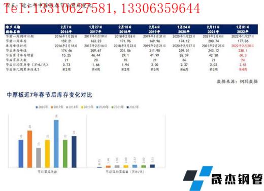 與螺紋鋼原因相對一致,2020年春節(jié)后累庫天數(shù)長達43天,節(jié)后第7周首次出現(xiàn)降庫趨勢。2016年至2019年,以及2021年,線材春節(jié)后累庫天數(shù)基本維持在21-35天,并在節(jié)后第3-5周首次出現(xiàn)降庫趨勢。依據(jù)建筑厚壁無縫鋼管品種屬性基本相似的慣例來看,2022年線材節(jié)后預(yù)計累庫天數(shù)也將達到30天左右,節(jié)后日均累庫9.72萬噸/天,同比201年高24%左右,節(jié)后第4周達到峰值,庫存峰值同比低4%左右。