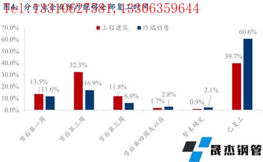 分行業(yè)來看,終端銷售樣本企業(yè)中,60.6%的企業(yè)目前已經(jīng)完全復(fù)工,節(jié)后第二周內(nèi)能夠復(fù)工的樣本企業(yè)占比可以達(dá)到89.1%,主要由于今年節(jié)前冬儲備貨情況整體較少,節(jié)后開門紅的行情走勢下,很多企業(yè)提前復(fù)工,積極入市詢價采購,以爭取利潤最大化。工程建筑樣本企業(yè)中,39.7%的企業(yè)目前已經(jīng)完成復(fù)工,節(jié)后第二周內(nèi)能夠復(fù)工的樣本企業(yè)占比可以達(dá)到85.6%,整體進(jìn)度情況也要好于往年同期水平。僅0.9%的工程建筑企業(yè)和2.1%的終端銷售企業(yè)暫未有明確的復(fù)工時間,主要是受疫情以及冬奧會的影響。