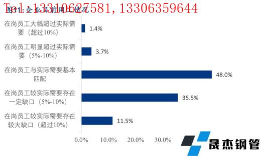 6、目前企業(yè)在崗員工人數(shù)與實際需求基本匹配的占比為48.0%,35.5%的企業(yè)目前在崗員工人數(shù)與實際需求相比存在少量的缺口,46.6%的企業(yè)在未來一段時間內(nèi)有增加用工人數(shù)的計劃,由此可見未來一段時間內(nèi)行業(yè)用工需求依然較大,僅僅只有5.1%的企業(yè)未在崗員工人數(shù)超過實際需求,預(yù)計未來一段時間會有少量的人員裁減計劃。