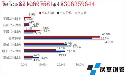 據(jù)調(diào)研,35.5%的樣本企業(yè)有出口業(yè)務(wù),出口業(yè)務(wù)比重大多集中在20%以內(nèi)。40.9%的企業(yè)出口訂單量較去年同期比基本持平,43.6%的企業(yè)出口訂單量同比有增長,15.5%的企業(yè)出口訂單同比有下降,主要是受全球疫情,以及中美貿(mào)易摩擦的影響。36.5%的企業(yè)出口價格較去年同期比基本持平,53.6%的企業(yè)出口價格同比有上漲,9.9%的企業(yè)出口價格同比出現(xiàn)下降。43.1%的企業(yè)出口量較去年同期比基本持平,49.7%的企業(yè)出口量同比有增長,主要是產(chǎn)品的類別和客戶都有增加,7.2%的企業(yè)出口量同比有所下滑,主要是受外幣貶值以及疫情影響下運輸成本提高的個影響。
