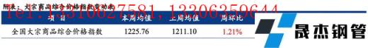 厚壁無縫鋼管:全國厚壁無縫鋼管價格指數(shù)報5237元/噸,較上周上漲194元/噸,漲幅3.84%。其中,長材價格指數(shù)報5195元/噸,較上周上漲4.16%;扁平材價格指數(shù)報5278元/噸,較上周上漲3.54%。