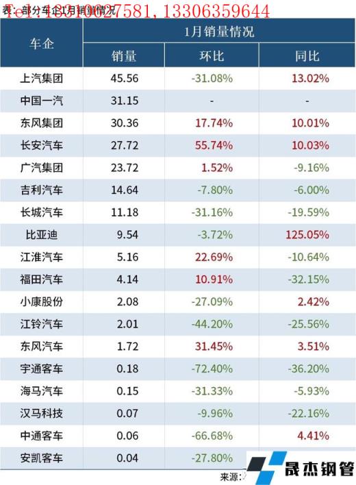 免責(zé)聲明:本網(wǎng)站(山東聊城晟杰無(wú)縫鋼管廠m.androidrecoverysoftware.com)刊載的“1月我國(guó)汽車(chē)產(chǎn)銷(xiāo)降幅明顯,多數(shù)車(chē)企呈現(xiàn)雙位數(shù)下跌”等均源于網(wǎng)絡(luò),版權(quán)歸原作者所有,且僅代表原作者觀點(diǎn),本文所載信息僅供參考。轉(zhuǎn)載僅為學(xué)習(xí)與交流之目的,如無(wú)意中侵犯您的合法權(quán)益,請(qǐng)及時(shí)聯(lián)系刪除。本網(wǎng)站刊登此篇文章并不意味著本站贊同其觀點(diǎn)或證實(shí)其內(nèi)容的真實(shí)性,我們不對(duì)其科學(xué)性、嚴(yán)肅性等作任何形式的保證。如果侵犯了您的版權(quán),請(qǐng)盡快聯(lián)系我們予以撤銷(xiāo),謝謝合作!