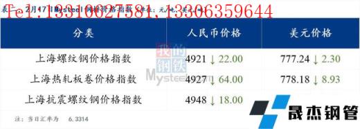 分地區(qū)方面,上海螺紋鋼價(jià)格指數(shù)4921,下跌22.0;上海熱軋板卷價(jià)格指數(shù)4927,下跌64.0。(單位:元/噸)